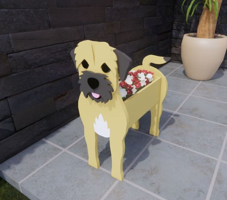 Border Terrier Dog Planter - Wooden Animal Plant Box - DIY Kit - Realistic Dog Garden Plant Holder