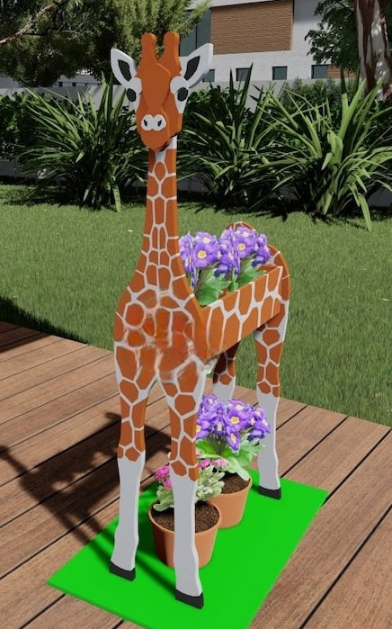 Giraffe Animal Planter - Wooden Safari Plant Box - DIY Kit - Realistic Garden Plant Holder