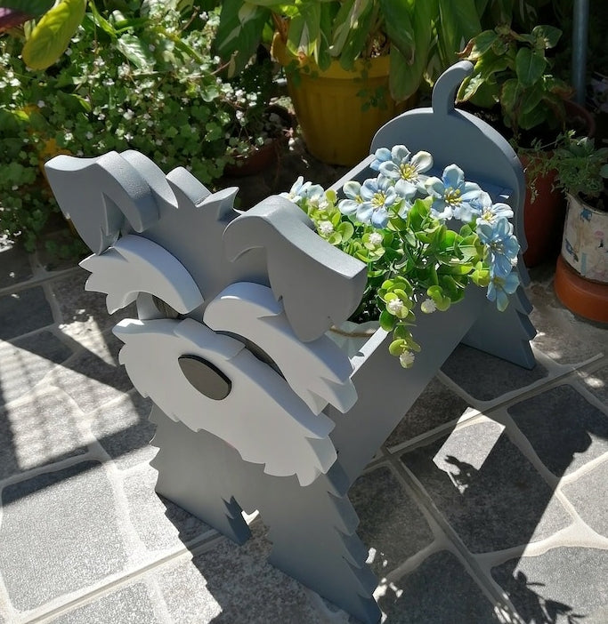 Schnauzer Dog Planter - Wooden Planter Box - DIY Kit - Realistic Dog Garden Plant Holder