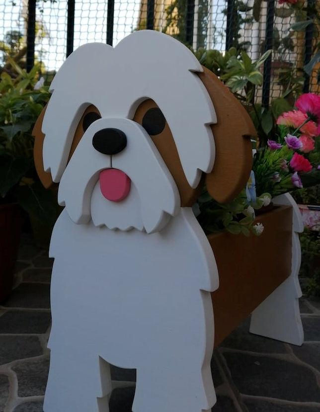 Shih Tzu Dog Planter - Wooden Planter Box - DIY Kit - Realistic Dog Garden Plant Holder