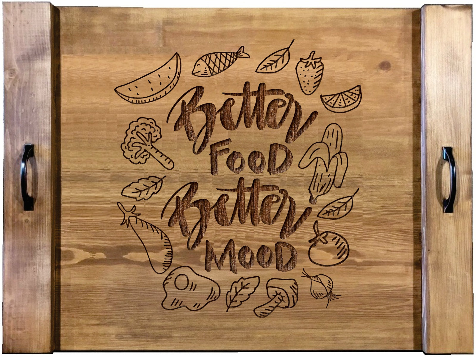 Good Food Is Good Mood Wood Engraved Noodle Board - Stove Cover - Sink Cover - With Handles - Gas or Electric Stove