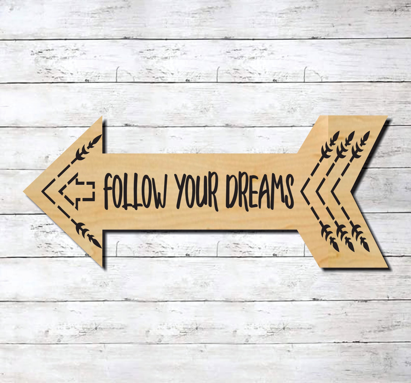Follow Your Dreams Arrow ~ Laser Engraved Sign Wood Wall Art