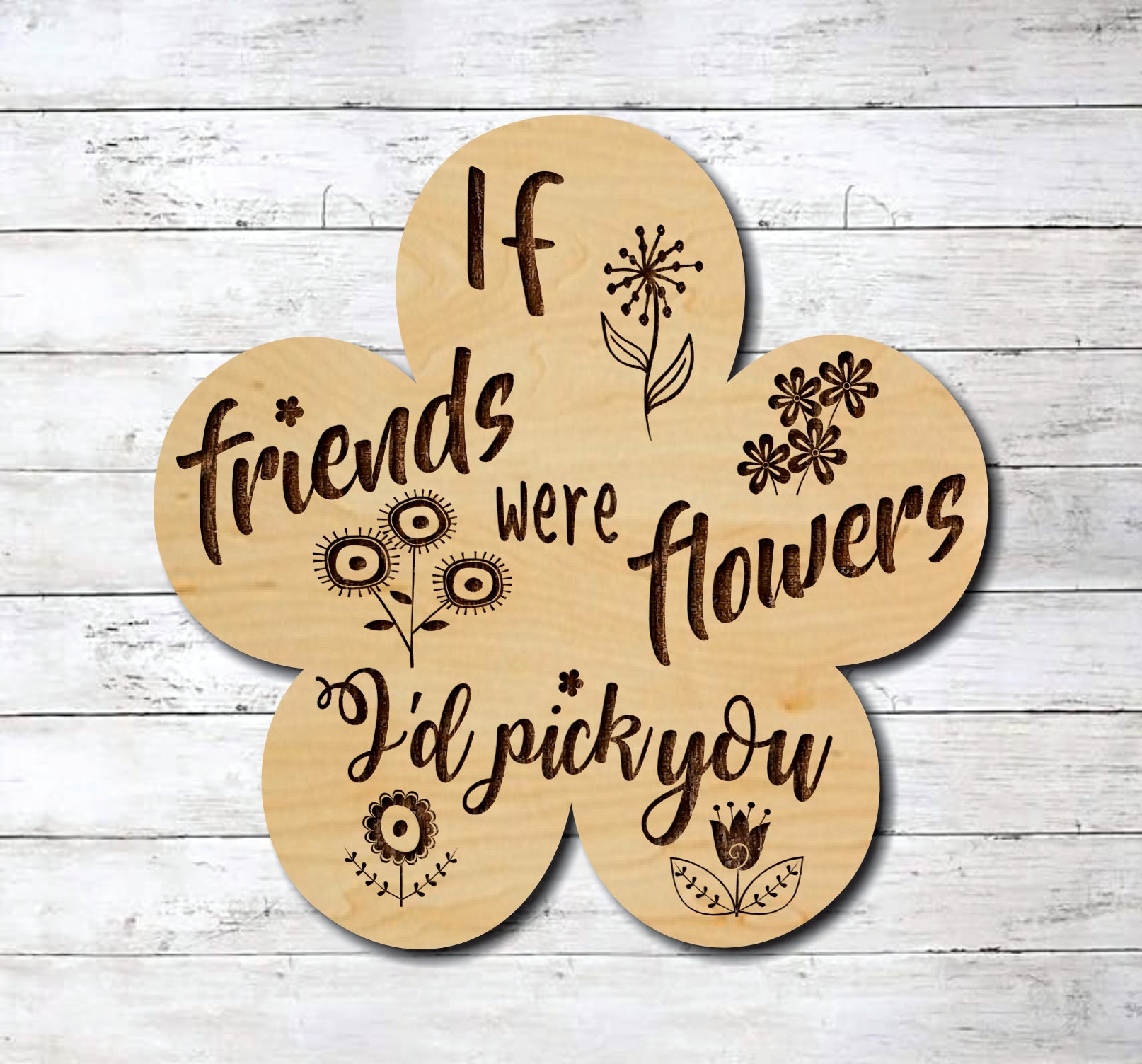 If Friends Were Flowers I'd Pick You Flower ~ Laser Engraved Sign Wood Wall Art
