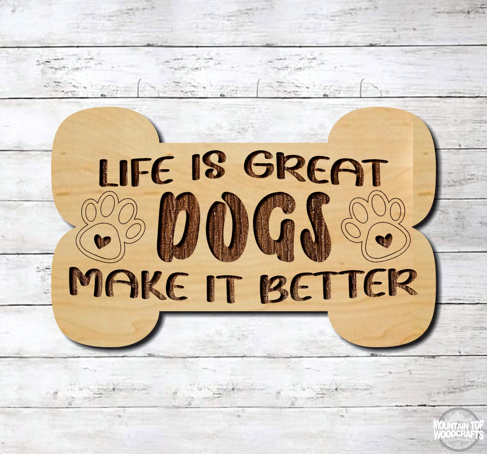 Life Is Great Dogs Make It Better ~ Pet Animal Dog Bone ~ Laser Engraved Sign Wood Wall Art