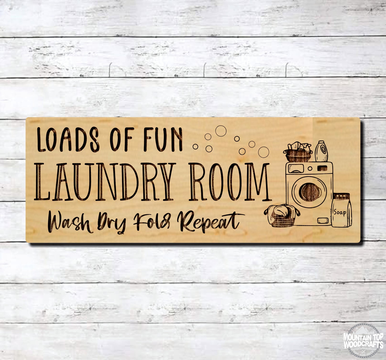 Laundry Loads Of Fun Farmhouse ~ Laser Engraved Sign Wood Wall Art