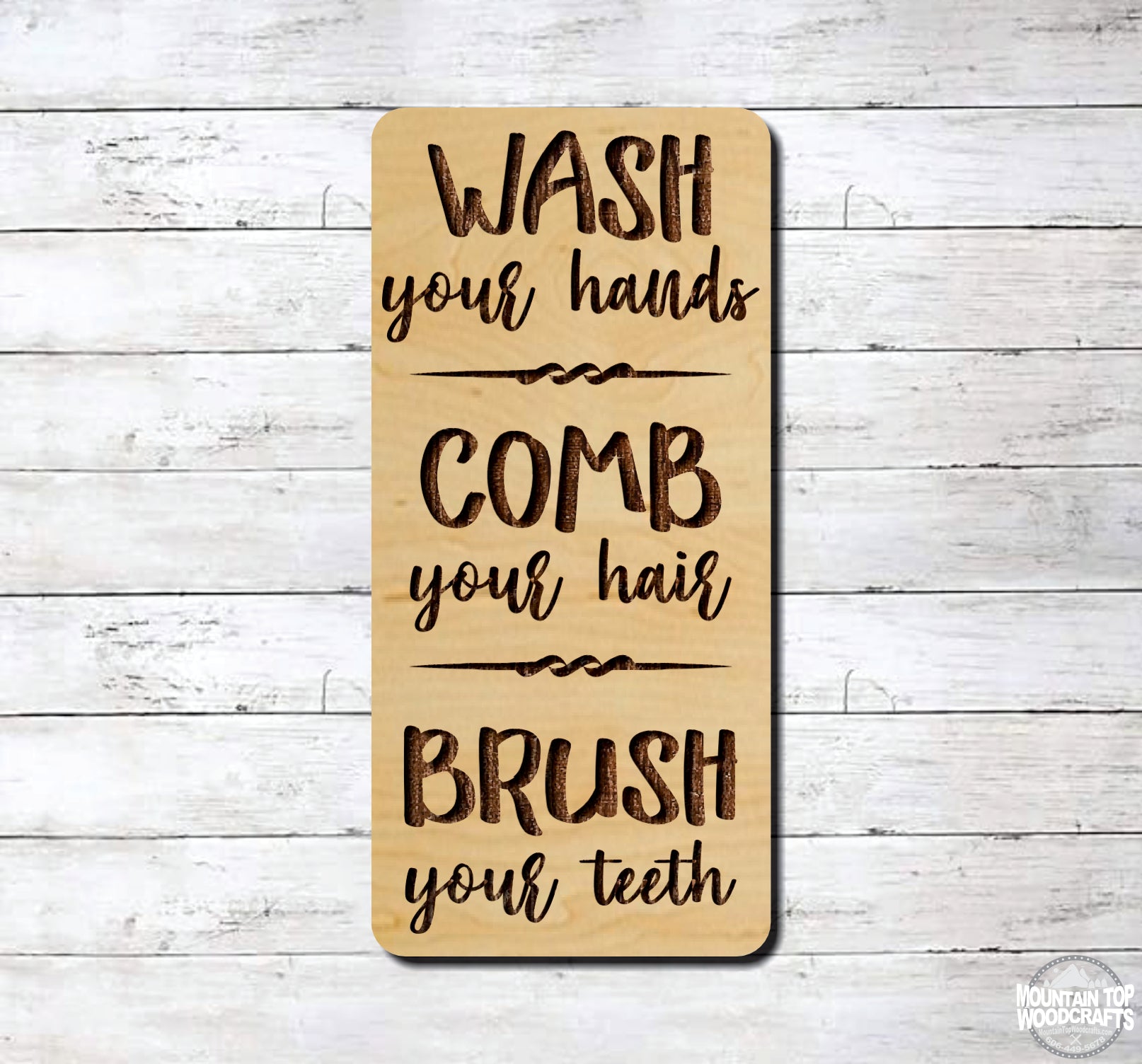 Bathroom Reminder ~ Wash Comb Brush ~ Laser Engraved Sign Wood Wall Art