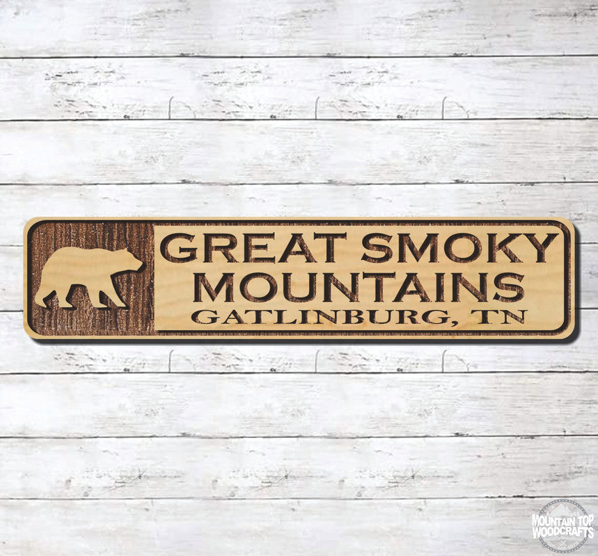 Great Smoky Mountains Gaitlinburg TN Street Sign ~ Laser Engraved Sign Wood Wall Art