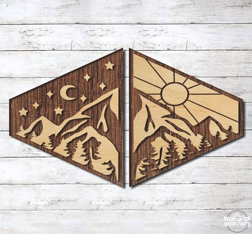 Day and Night Mountain Scene ~ 2 Set ~ Laser Engraved Sign Wood Wall Art