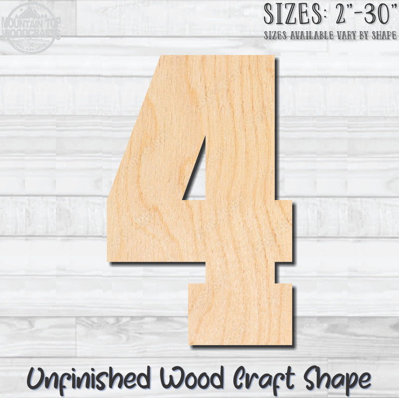 Varsity Number 4 Sports Unfinished Wood Shape Blank Laser Engraved Cutout Woodcraft Craft Supply