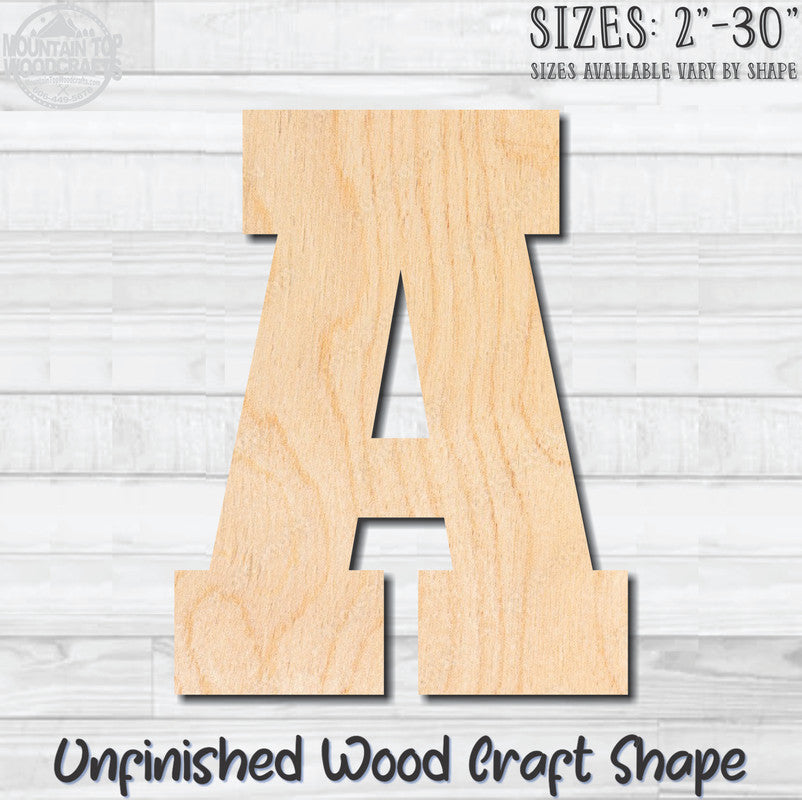 Varsity Letter A Sports Unfinished Wood Shape Blank Laser Engraved Cutout Woodcraft Craft Supply