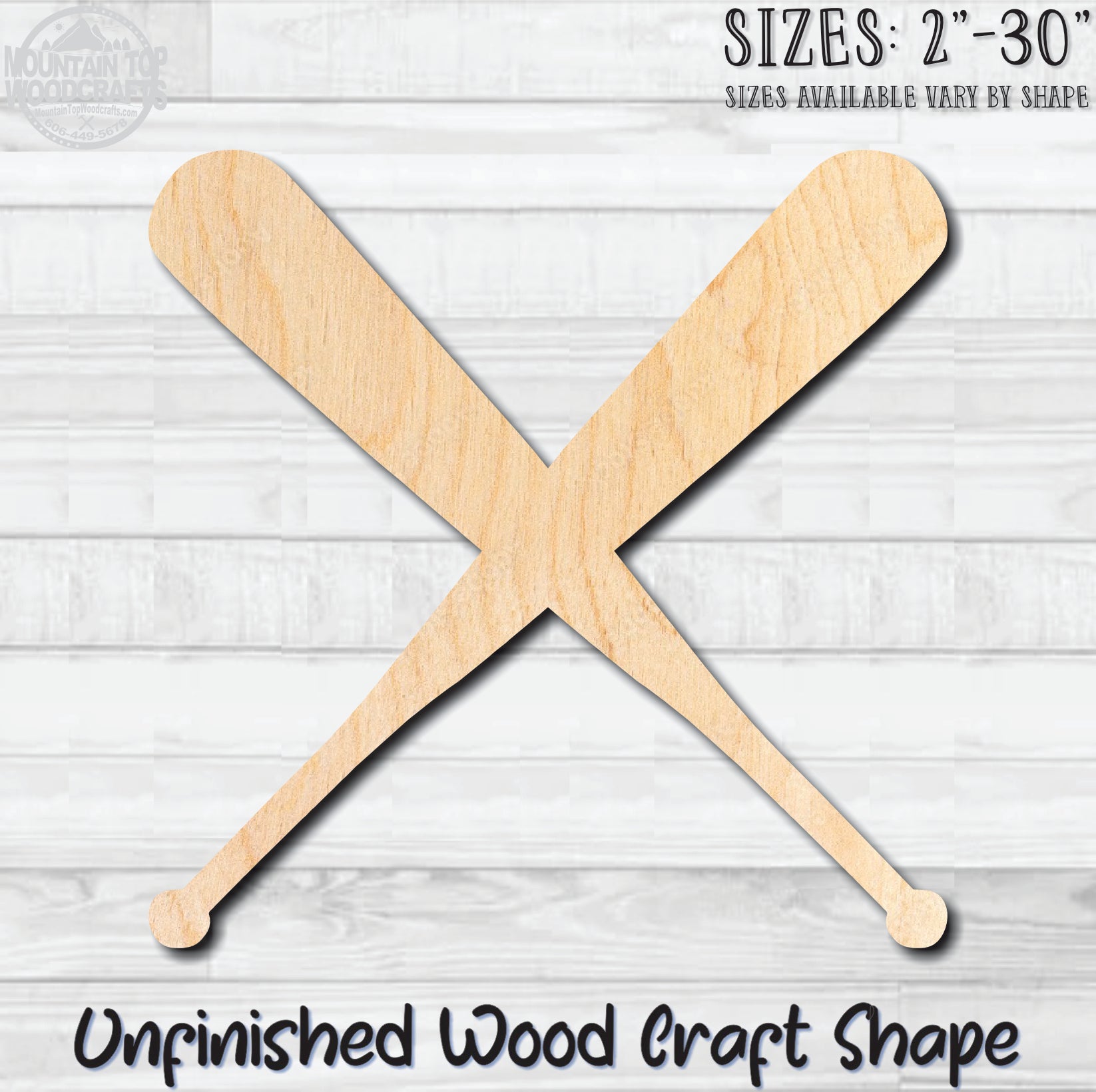 Crossed Baseball Bats Unfinished Wood Shape Blank Laser Engraved Cut Out Woodcraft Craft Supply