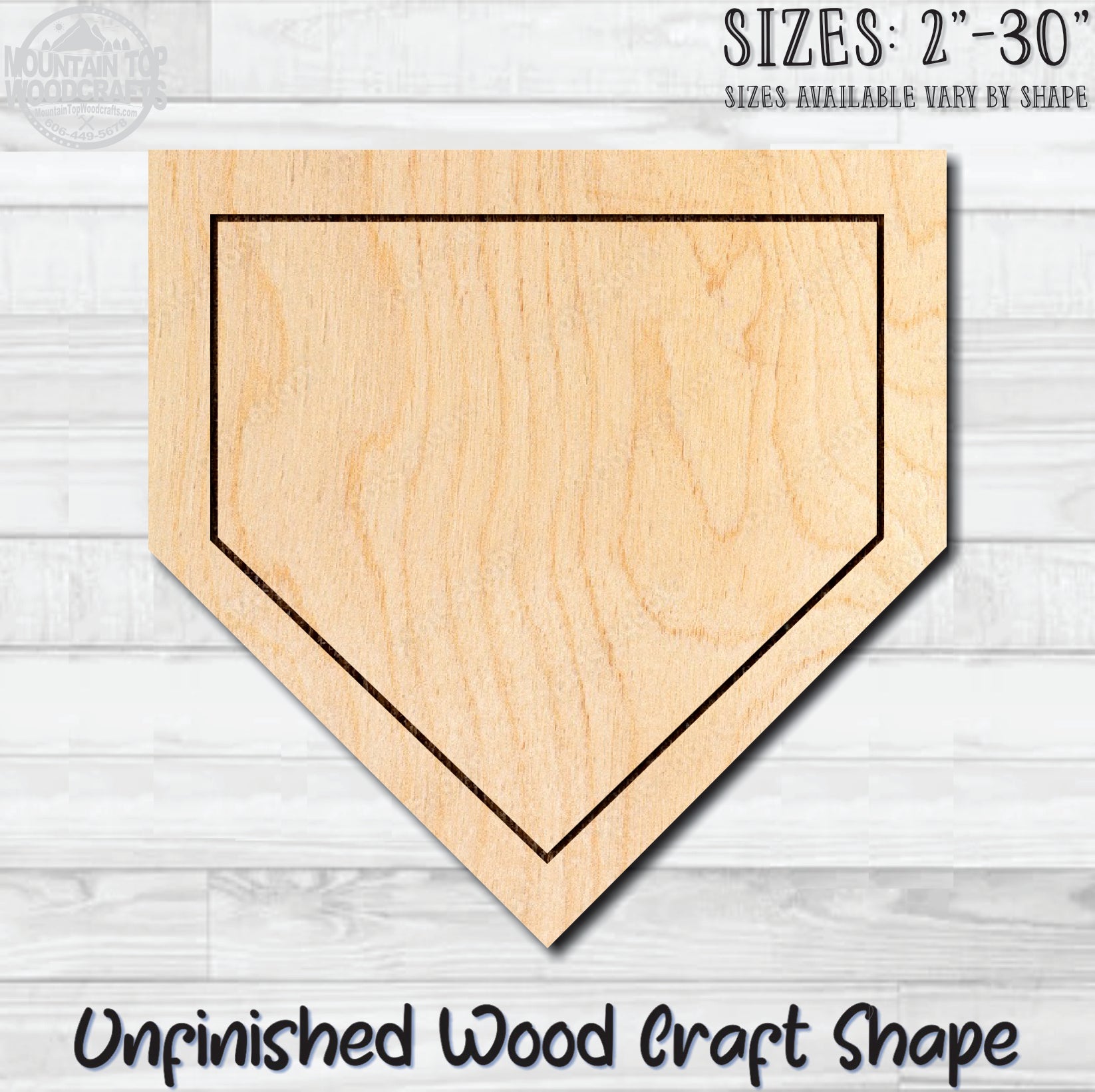 Baseball Home Plate Base Unfinished Wood Shape Blank Laser Engraved Cut Out Woodcraft Craft Supply