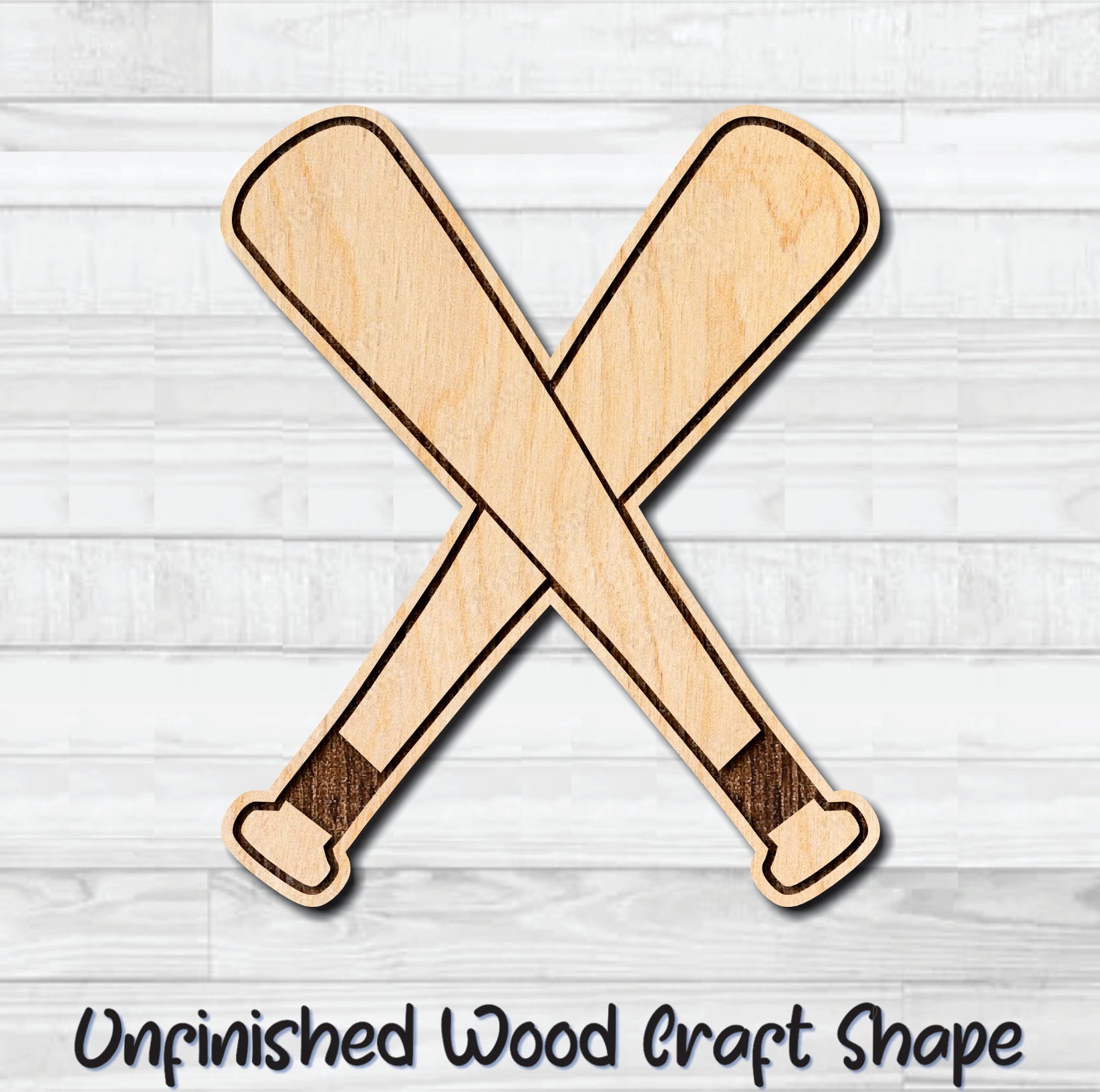 Baseball Crossed Bats Unfinished Wood Shape Blank Laser Engraved Cut Out Woodcraft Craft Supply