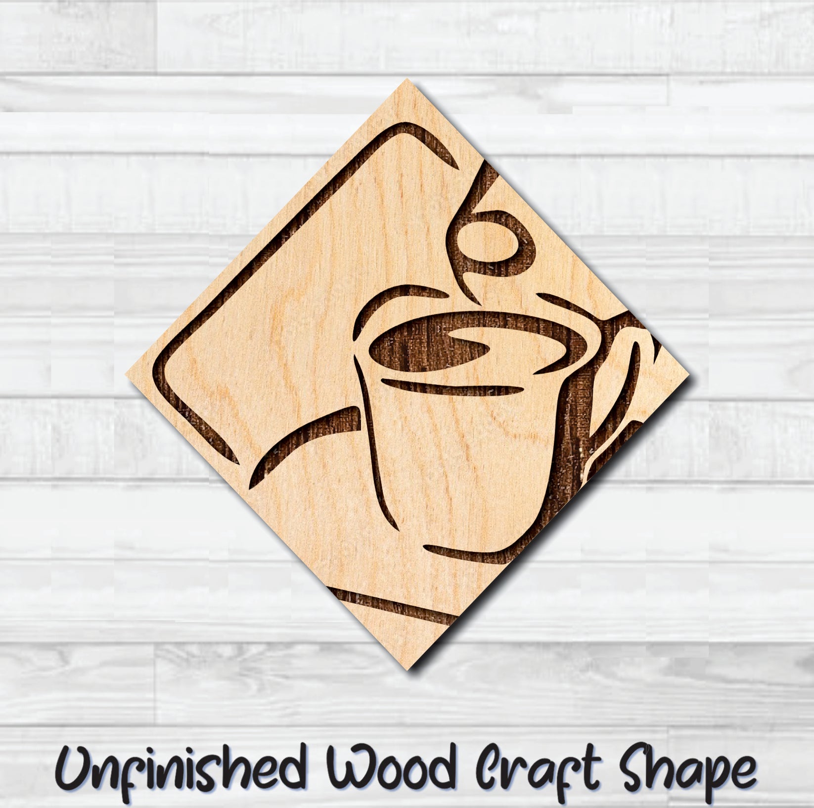 Coffee Tea Abstract Badge Diamond Unfinished Wood Shape Blank Laser Engraved Cut Out Woodcraft Craft Supply