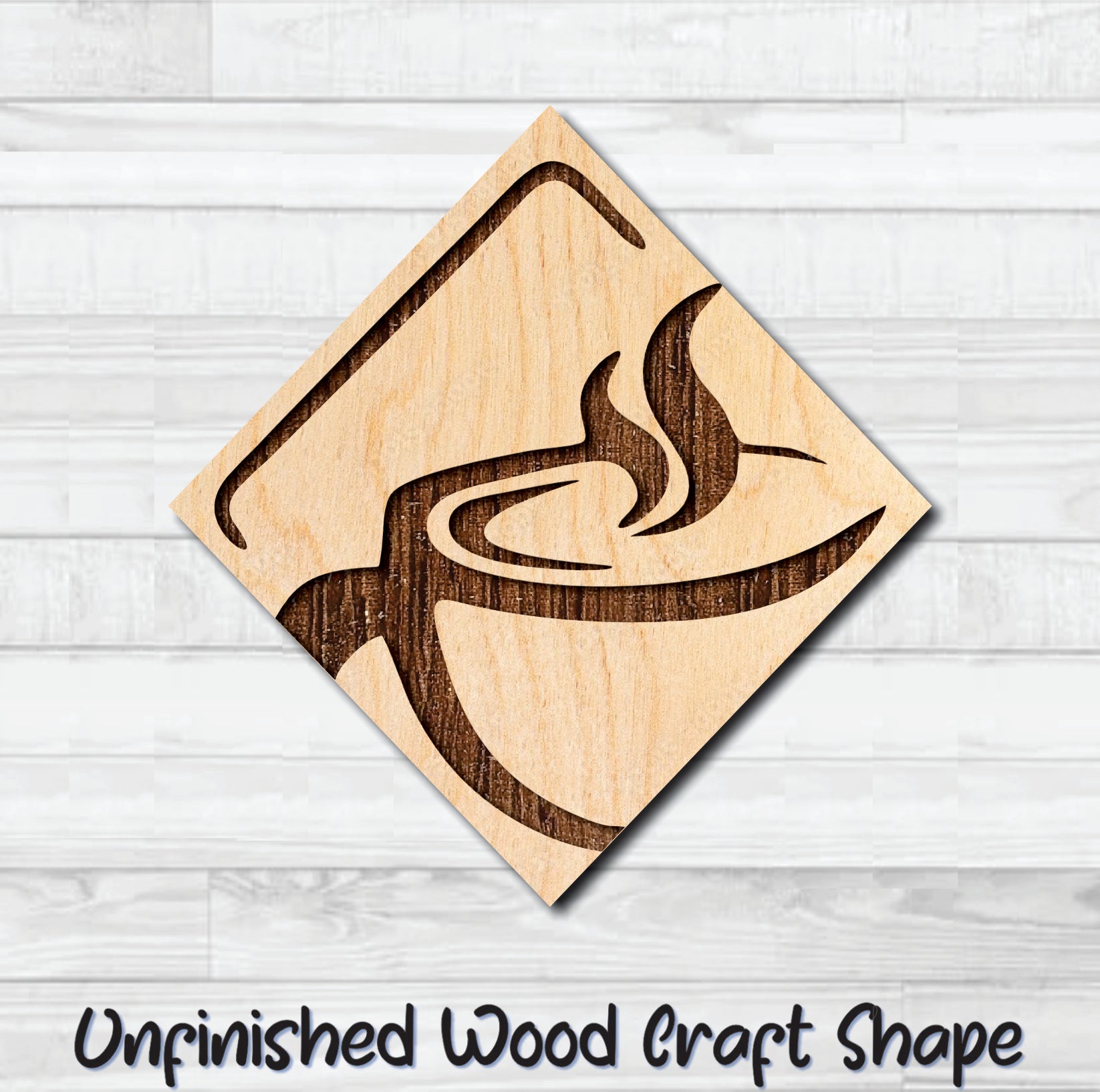 Coffee Tea Abstract Badge Diamond 2 Unfinished Wood Shape Blank Laser Engraved Cut Out Woodcraft Craft Supply