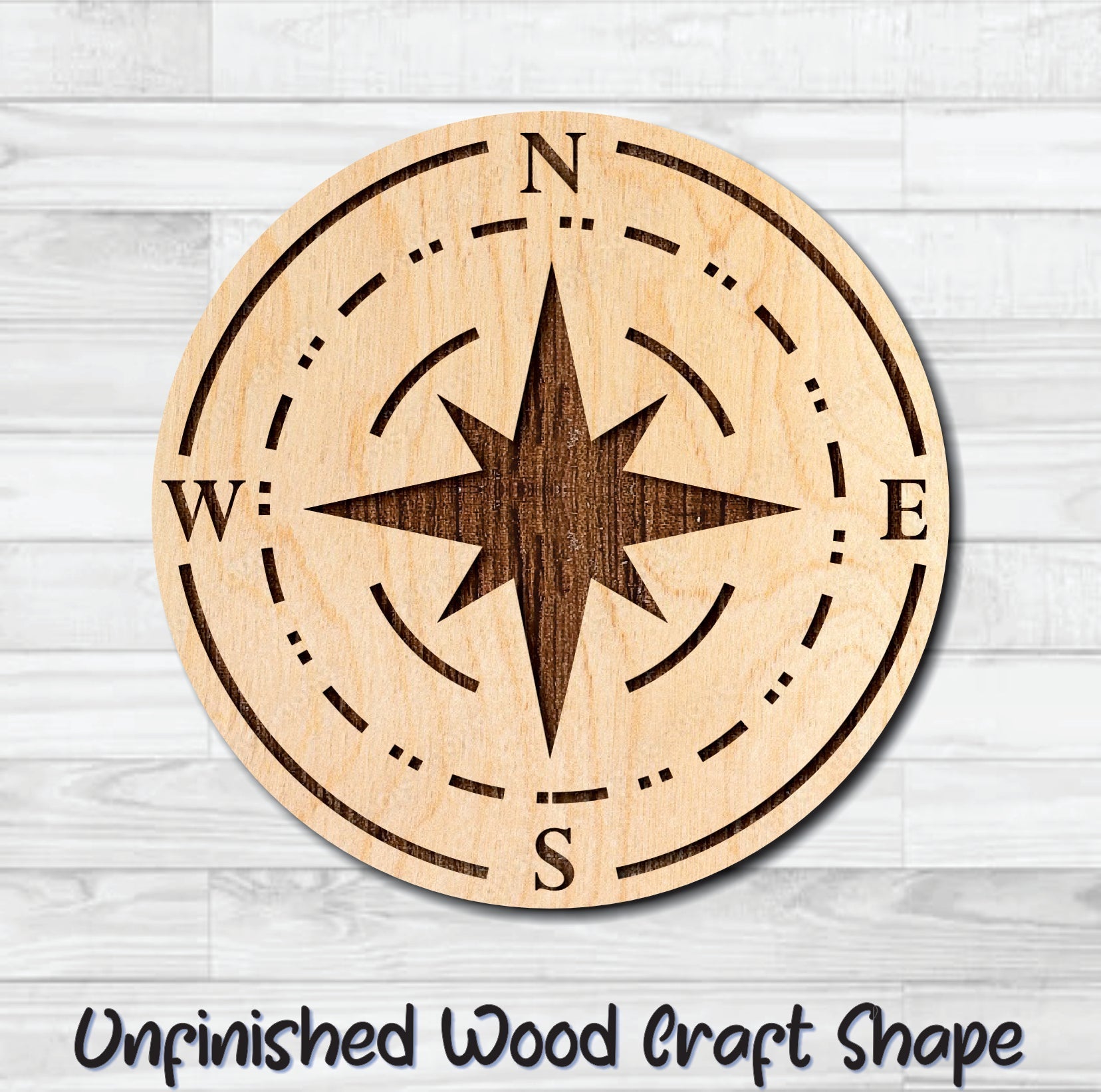 Compass Nautical 7 Unfinished Wood Shape Blank Laser Engraved Cut Out Woodcraft Craft Supply
