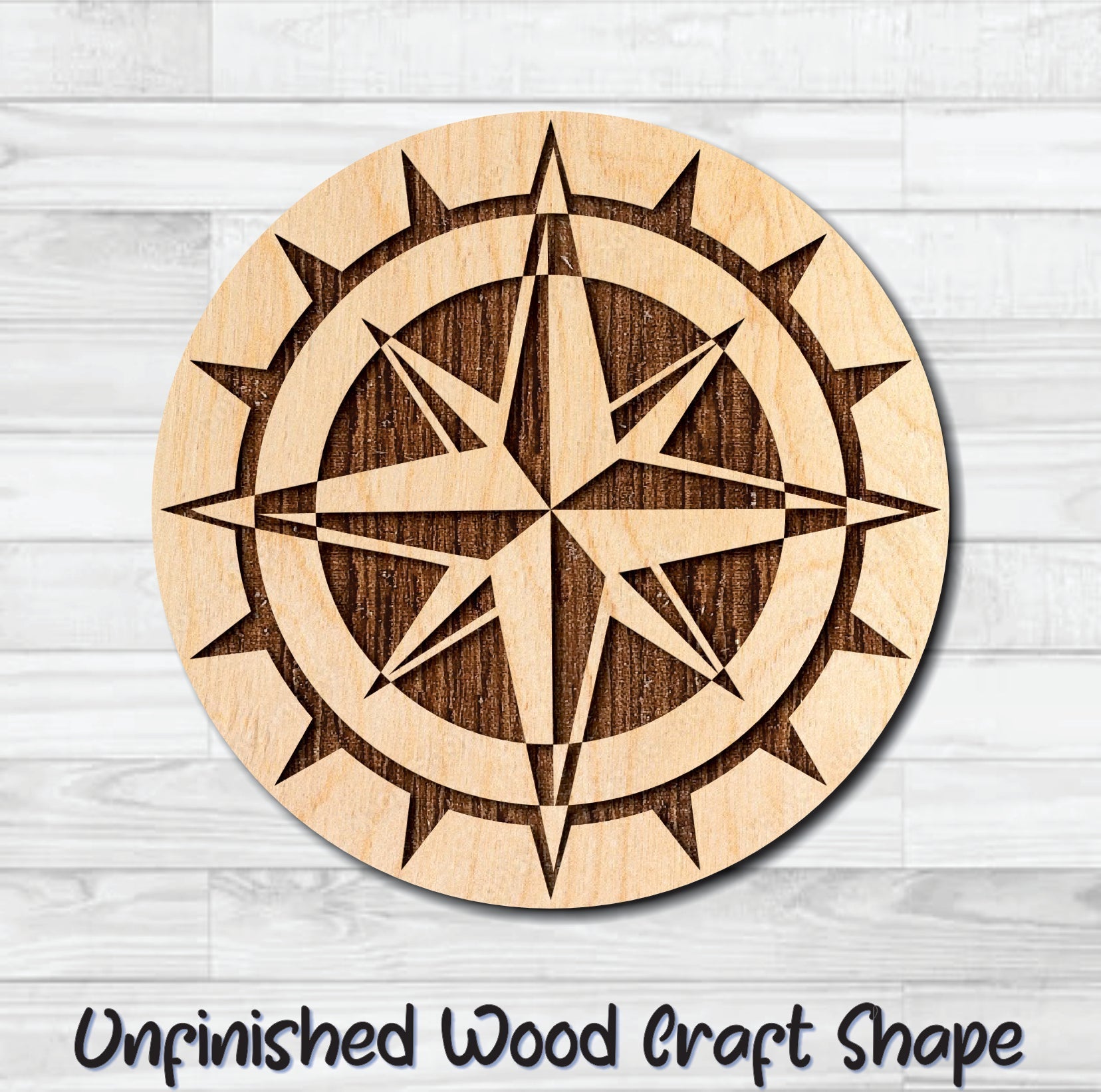 Compass Nautical 10 Unfinished Wood Shape Blank Laser Engraved Cut Out Woodcraft Craft Supply