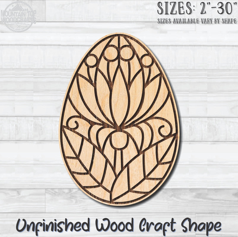 Floral Coloring Easter Egg 8 Unfinished Wood Shape Blank Laser Engraved Cutout Woodcraft Craft Supply