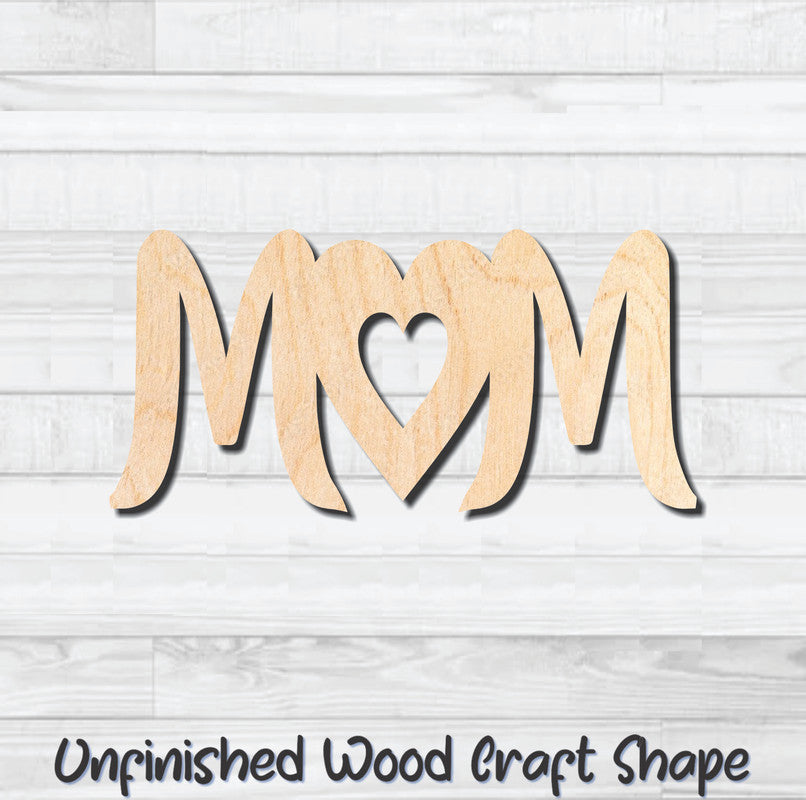Mom Word Heart Unfinished Wood Shape Blank Laser Engraved Cutout Woodcraft Craft Supply