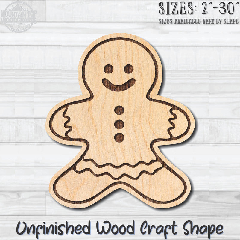 Gingerbread Man 2 Christmas Unfinished Wood Shape Blank Laser Engraved Cutout Woodcraft Craft Supply