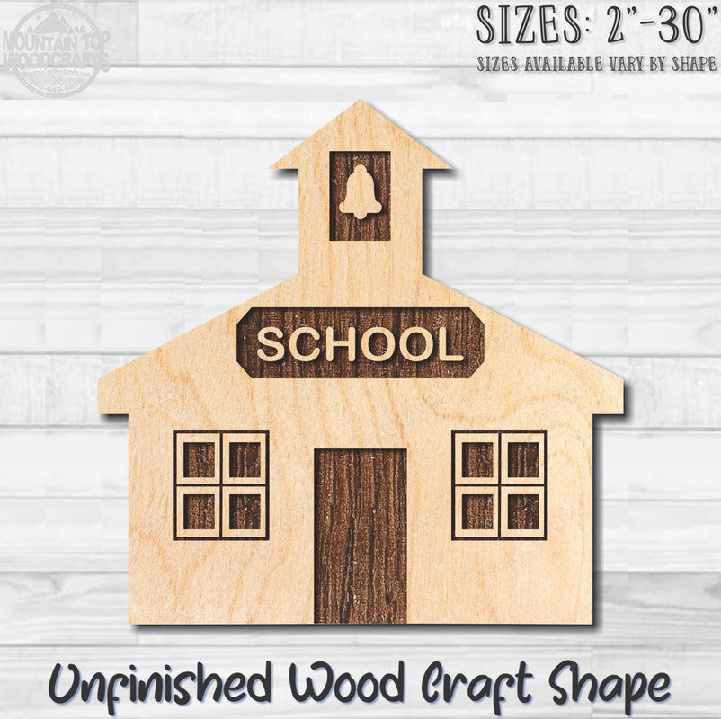 School House Unfinished Wood Shape Blank Laser Engraved Cut Out Woodcraft Craft Supply