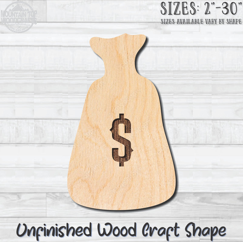 Money Bag Bank Unfinished Wood Shape Blank Laser Engraved Cutout Woodcraft Craft Supply