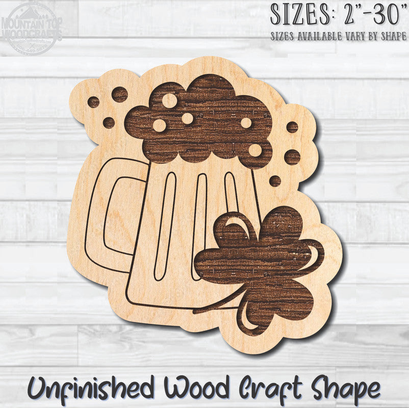 Beer Stein Clover Unfinished Wood Shape Blank Laser Engraved Cutout Woodcraft Craft Supply
