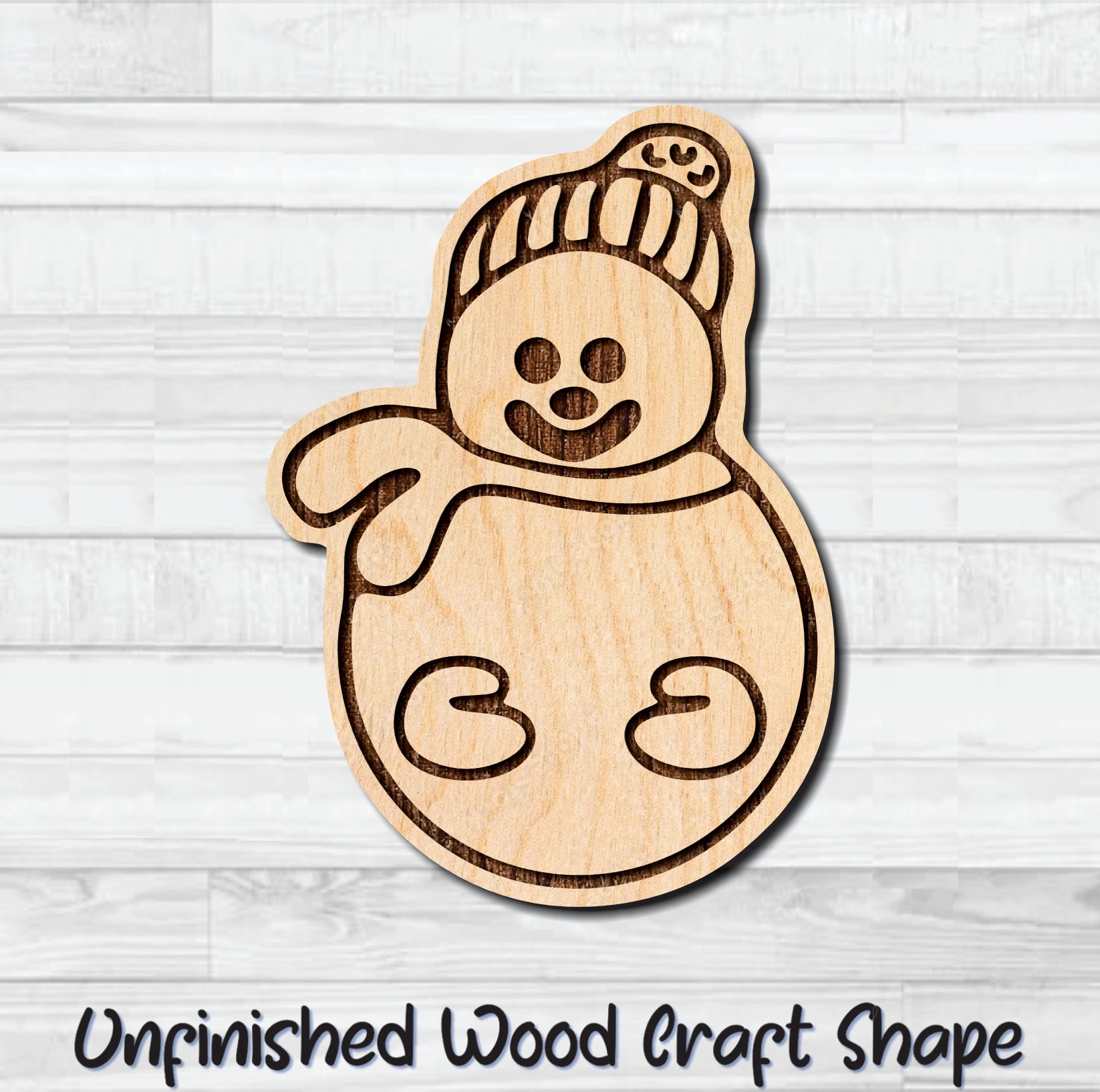 Round Snowman Unfinished Wood Shape Blank Laser Engraved Cut Out Woodcraft Craft Supply
