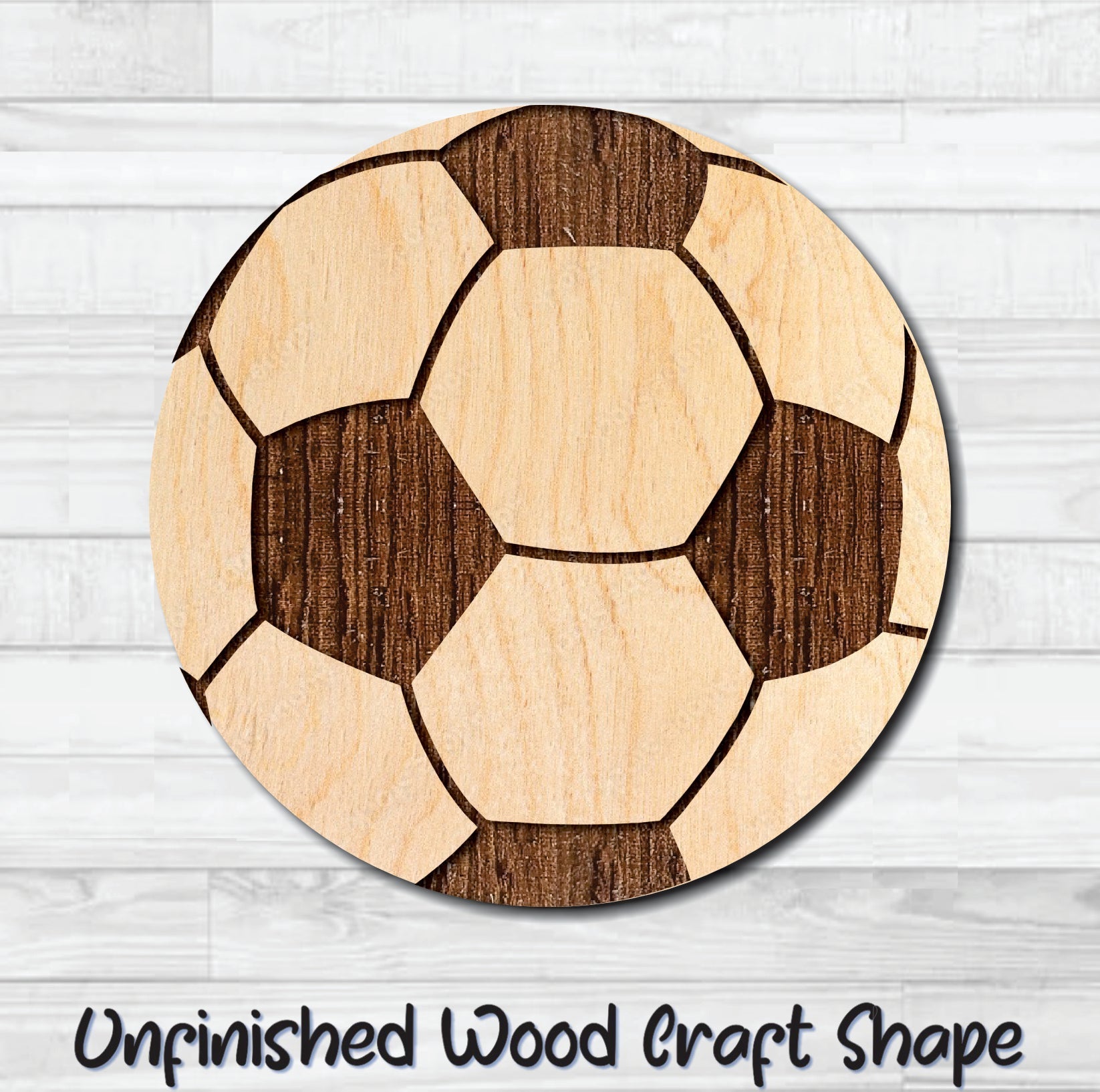 Soccer Ball Unfinished Wood Shape Blank Laser Engraved Cut Out Woodcraft Craft Supply