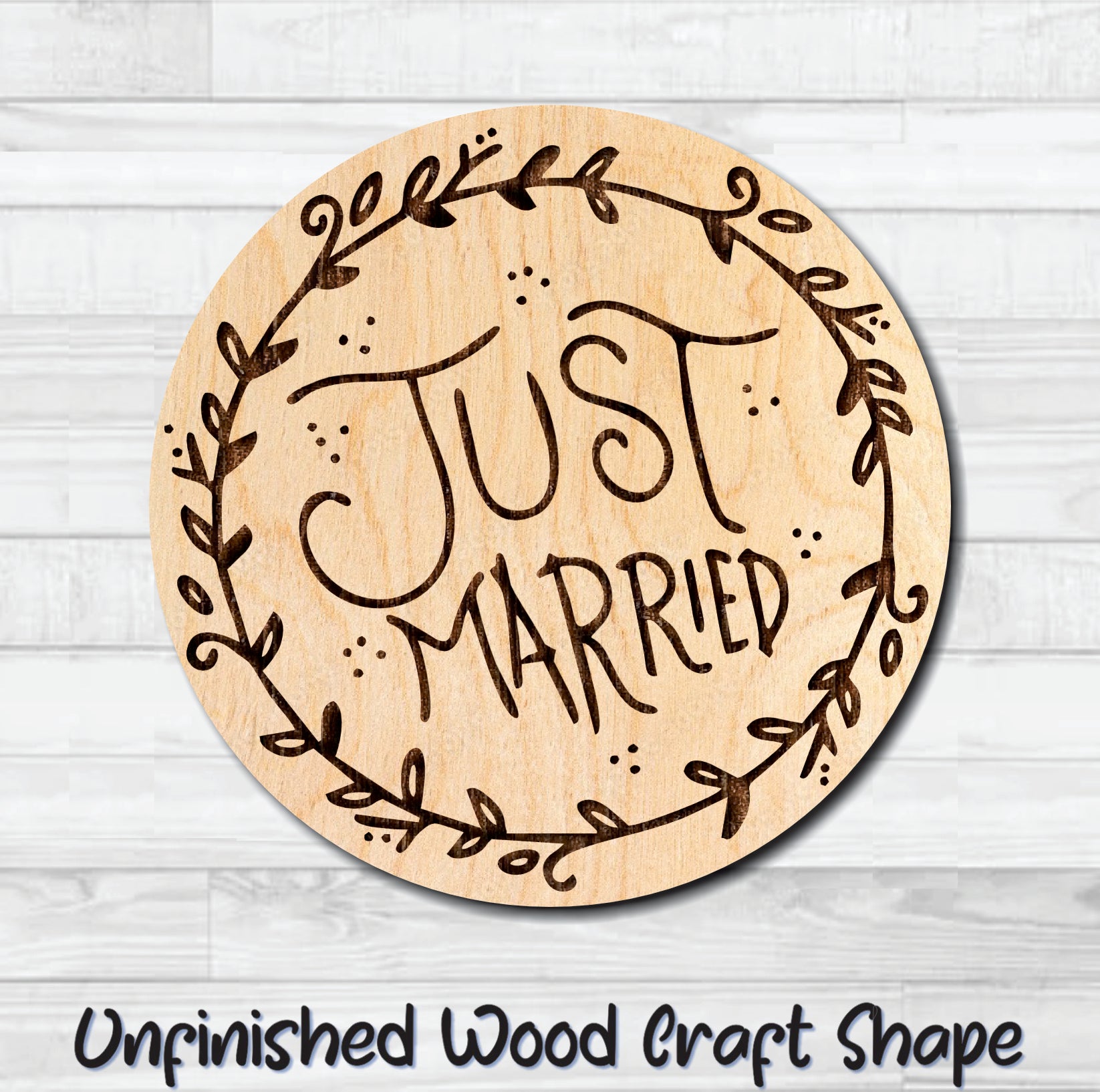 Just Married Vine Badge Unfinished Wood Shape Blank Laser Engraved Cut Out Woodcraft Craft Supply