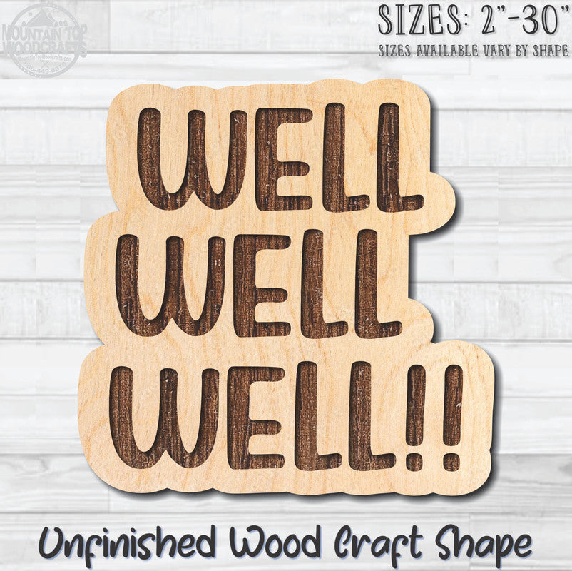 Well Well Well!! Unfinished Wood Shape Blank Laser Engraved Cutout Woodcraft Craft Supply