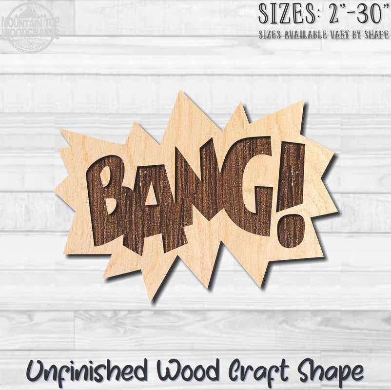 BANG! Superhero Unfinished Wood Shape Blank Laser Engraved Cutout Woodcraft Craft Supply